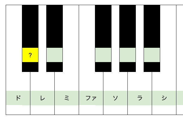 この図を見たとき、以下のようにドレミ・・がすぐに分かるように位置を覚えましょう!と言うのが本日1つ目のお題です。