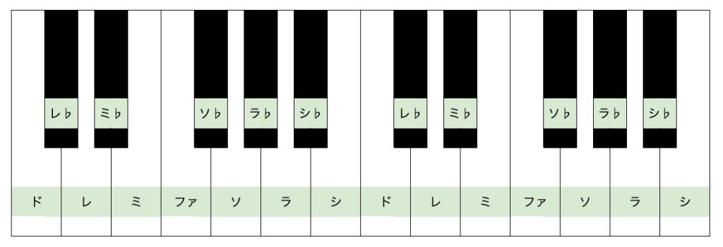 - 黒鍵が2つ並んでいる島と黒鍵が3つ並んでいる島が交互に並んでいる