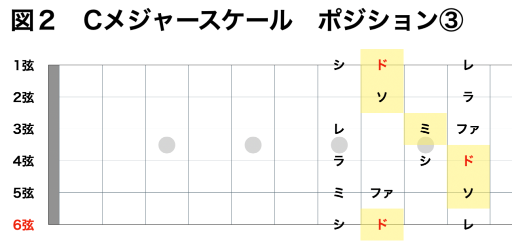 ポジション③を利用する理由は、ドの音が6弦にあるからです。